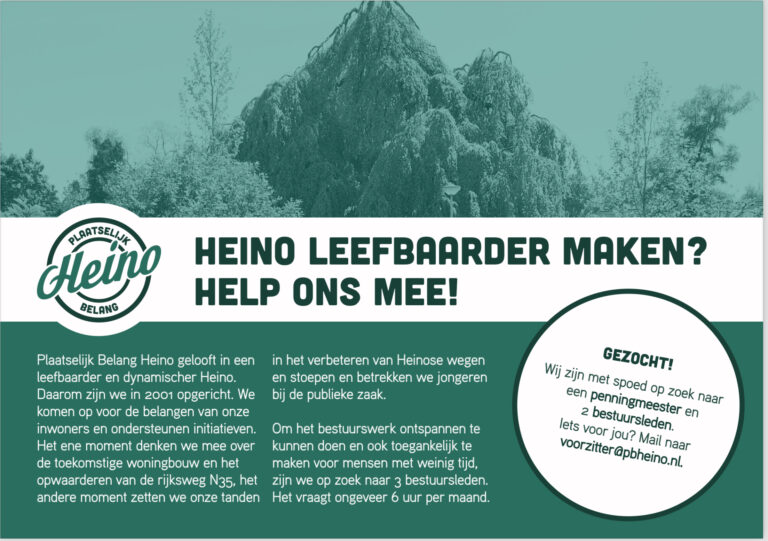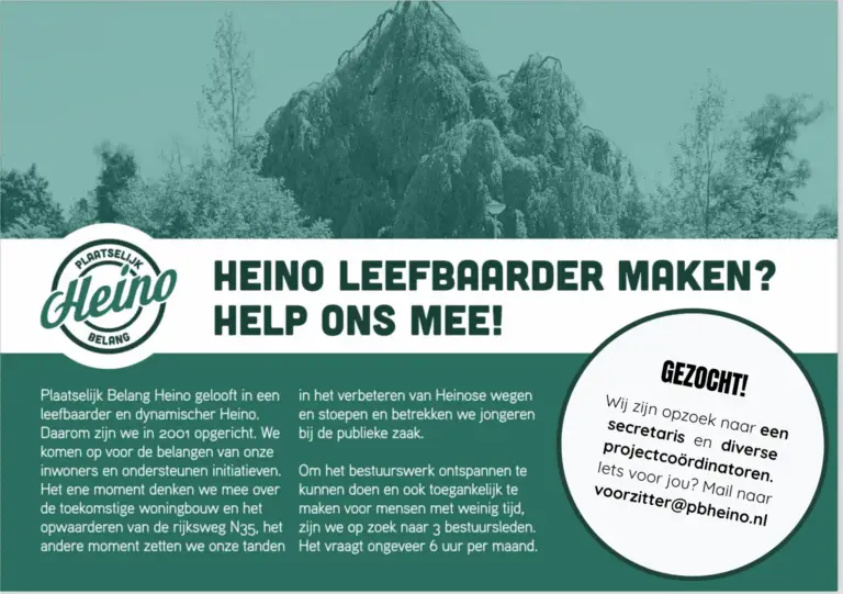 Ben je al wel lid van Plaatselijk Belang Heino maar ontvang je nog geen digitale nieuwsbrief? Dan kun je je hier aanmelden.
